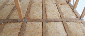 След това на тавана се полага филм за пароизолация, със задължителното спазване на припокриване на положените ленти от 7-10 см и залепване на всички фуги с лента. Плочи от базалтова вълна се полагат между гредите на тавана. Ако дизайнът на тавана не позволява полагане на плочи от базалтова вълна между гредите, тогава преди полагането е необходимо да се запълнят монтажните релси на тавана, като се спазва стъпка с 0,5-0,7 cm по-малка от ширината на изолационните плочи.