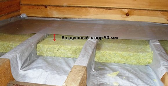 Върху изолационните плочи те са покрити с хидроизолационен филм, отгоре на който, за да се осигури възможността за свободно движение по тавана, е монтиран под от стари дъски.