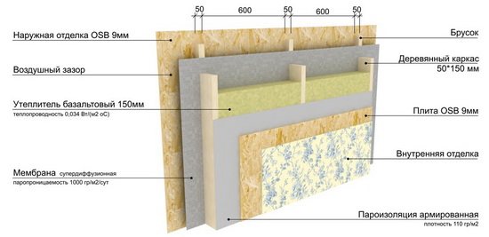 Дебелината на стените на рамкова къща за зимна резиденция - схеми