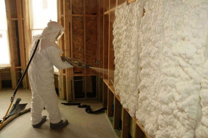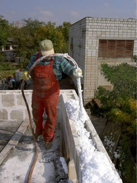 Когато се нанася върху повърхността, прилича на полиуретанова пяна. Технологията за пръскане предполага безшевен слой топлоизолация, което прави възможно обработването на всякакви геометрични структури.