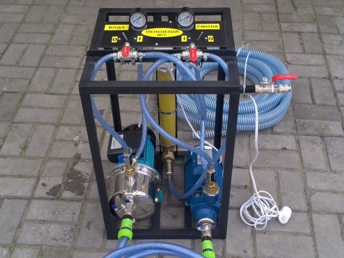 Основното предимство на инсталациите от този тип пред GZhU е липсата на генератор на пяна. В тях пяната се създава поради турбулентни потоци от вода и въздух в маркуча при триене по стените на маркуча. След това смолата се инжектира в потока пяна, точно както в GZHU, и смесването се извършва в изходния маркуч. И тъй като няма генератор за пяна, тогава няма недостатъци, свързани с него.