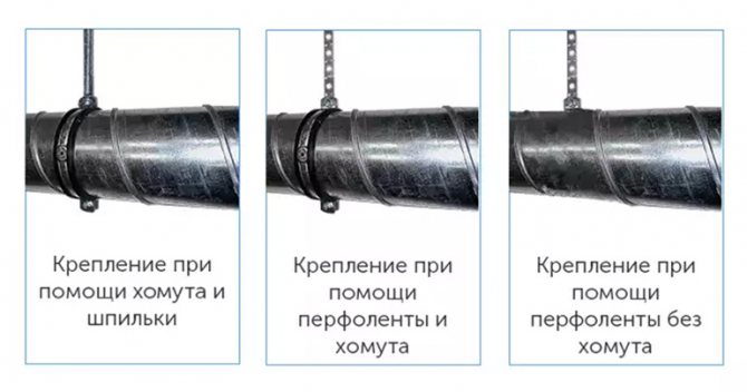 Свързването на вентилационните тръби помежду си се извършва по заварен или фланцов метод. Освен това елементите могат да бъдат фиксирани с превръзка, зърно или ръкав.