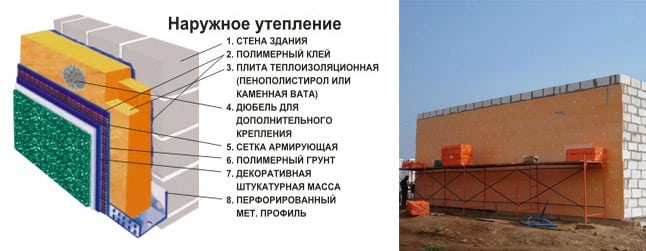 - топлоизолация на стена, която е покрита с мазилка или сайдинг.