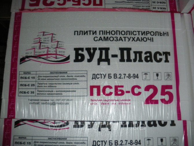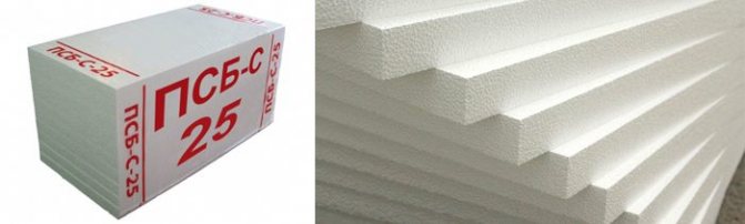 За работа изберете PSB-S-25 или PPS-16F. Невъзможно е да се използва пяна с по-ниска плътност, тъй като тя няма да издържи масата на циментовия разтвор. Купуването на плочи от експандиран полистирол със специфично тегло от 35 кг / м3 няма смисъл - материалът във всички отношения не отстъпва на модели 15 и 25, но струва много повече.
