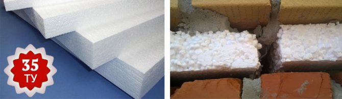 Когато запълвате кухи стени, е по-изгодно да използвате чипове от пяна - това е по-евтино и ви позволява напълно да запълните вътрешното пространство между тухлите. Материалът се продава в крафт торби с обем от 1 м3.