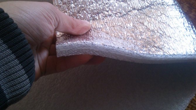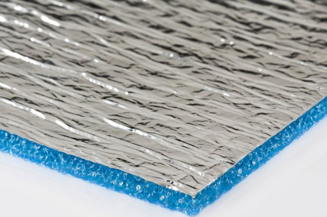 По-голямата част от материала е разпенен полиетилен... В този случай образуваните върху него пори се затварят и се пълнят с въздух. Такава полиетиленова пяна се използва под формата на чилета с различна плътност, дебелина и различни вътрешни структури. От едната или от двете страни, в зависимост от предназначението на материала, полиетиленът е покрит с алуминиево фолио. Преди нанасяне се обработва и полира до висок гланц с максимална отразяваща способност (до всички 97% и дори повече). По-често фолиото се нанася с помощта на топлинно заваряване, което осигурява по-добра адхезия на материала.