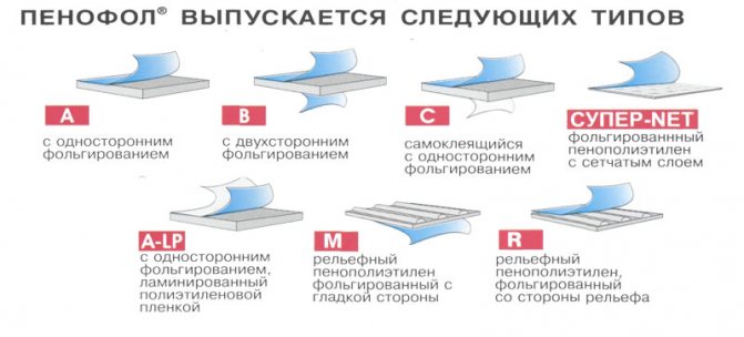 В зависимост от характеристиките на помещението и метода на топлоизолация се избира подходящият вид Пенофол. Някои от тях могат да бъдат монтирани автономно (тип В), други служат като хидроизолация на по-мощна изолация (тип А), а трети действат като основа на топлоизолационния слой (тип С). Този материал успешно позволява на повърхността да диша, без да натрупва влага. Той облекчава стените от появата на мухъл и плесен, които възникват след проникване на пара.