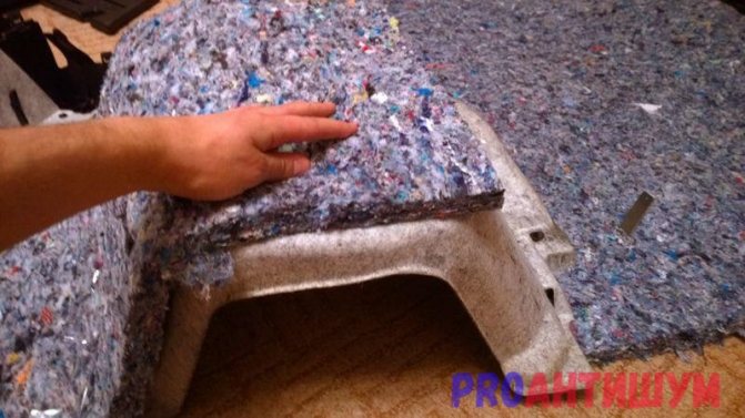 Памучната вата се нанася върху цялата повърхност на крилото на вратата, като се избягват празнини, използва се лепило или крепежни елементи, като се обръща внимание на изолацията по периметъра. Отгоре е покрито с декоративно покритие (изкуствена кожа).