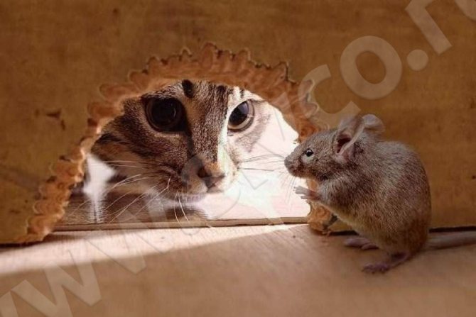 Присъствието на котка в къщата, и за предпочитане няколко, може да предотврати появата на малки вредители. Всеки знае с какво удоволствие ловните котки унищожават гризачите. Всъщност дори миризмата на хищник плаши гризачите. Но това не винаги работи. Може да срещнете котка, която ще живее на една и съща територия с мишки в пълна хармония, без да им причинява вреда. Естествени врагове на дребните гризачи са невестулките, костурите. Няколко от тези опитомени животни са в състояние бързо да изчистят къщата от мишки.